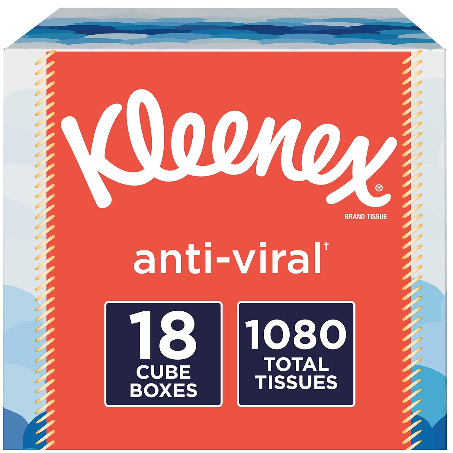 Kleenex soothing lotion tissues with aloe, coconut oil and vitamin e, 4 cube boxes, 1 cube box.